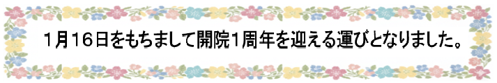 おかげさまで当院は1周年を迎えました、皆さまから愛される地域のかかりつけの整骨院を目指して参ります、今後とも宜しくお願い申し上げます。