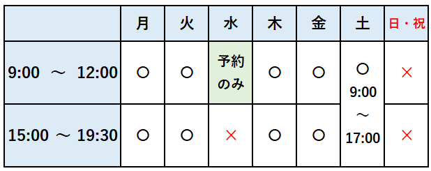 施術日・受付時間