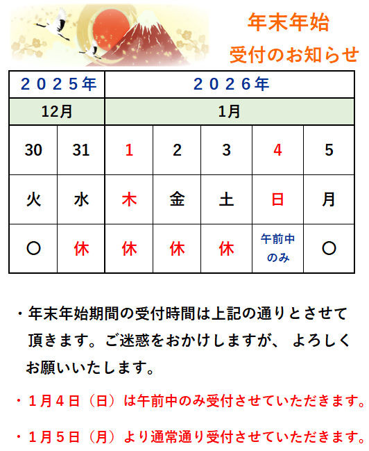 ・土曜日の受付時間は 9:00から17:00まで受付しております。(昼休み休憩は有りません)