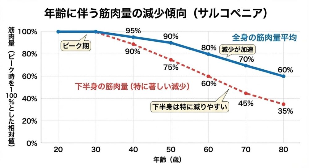 サルコペニアとは、加齢などを原因として全身の筋肉量が減少し、筋力や身体機能が低下した状態を指し、歩行困難や転倒・骨折のリスクを高め、要介護状態につながる可能性のある健康問題です。筋肉は40歳頃から減り始め、60歳以降で減少が加速するため高齢者に多くみられ、栄養不足や運動不足、特定の病気が要因となり、適切な食事と運動(特に筋力トレーニング)で予防・改善が期待されます。(AI gemini )